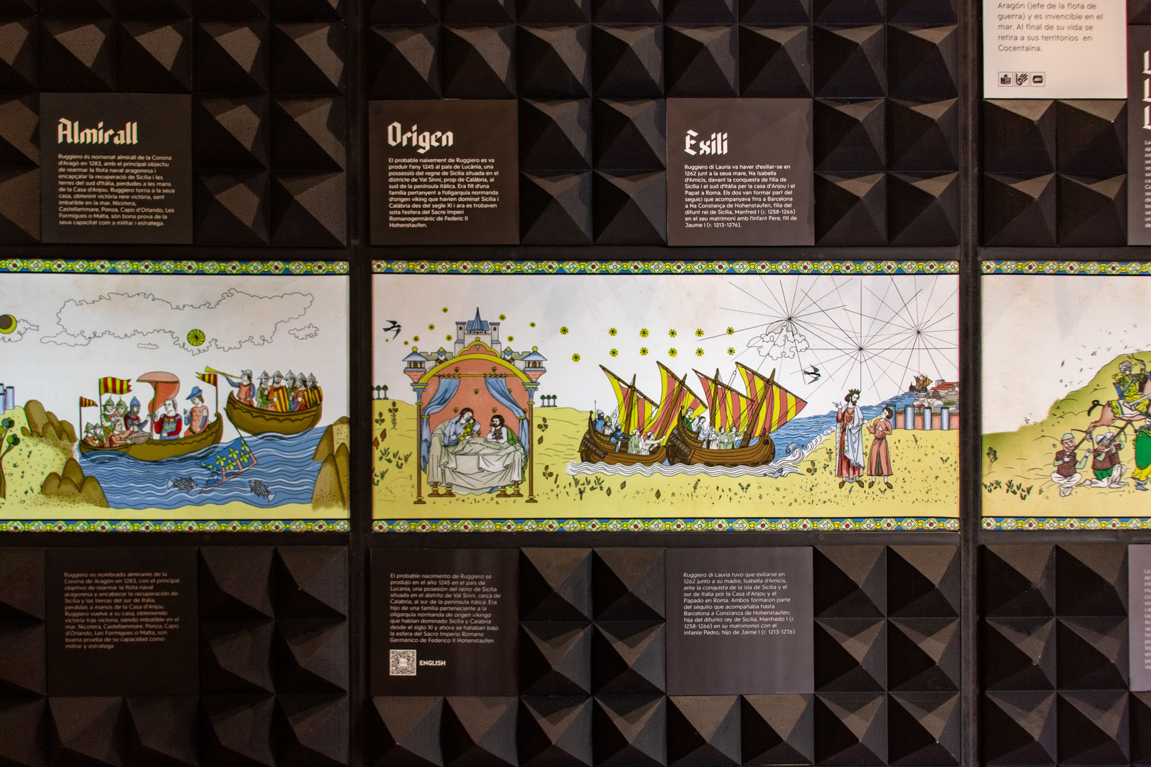 Tres audiovisuales complementan la experiencia: la excavación de la Pobla de Ifach, la historia de Cocentaina y la vida de los Llúria guiada por el historiador Muntaner. Las ilustraciones se presentan en estructuras que evocan murallas y almenas, fusionando arquitectura, historia y narrativa gráfica, y ofreciendo un recorrido único que acerca la historia medieval al público contemporáneo.