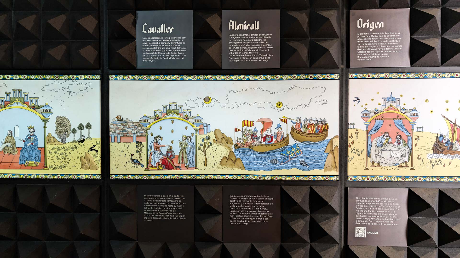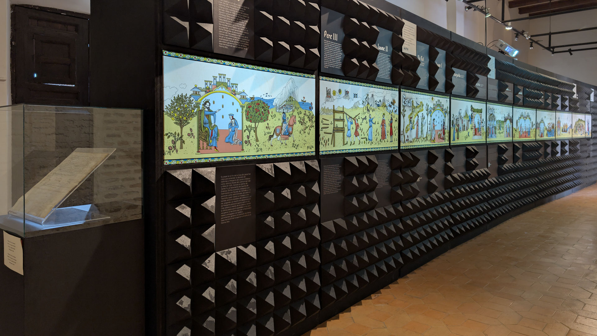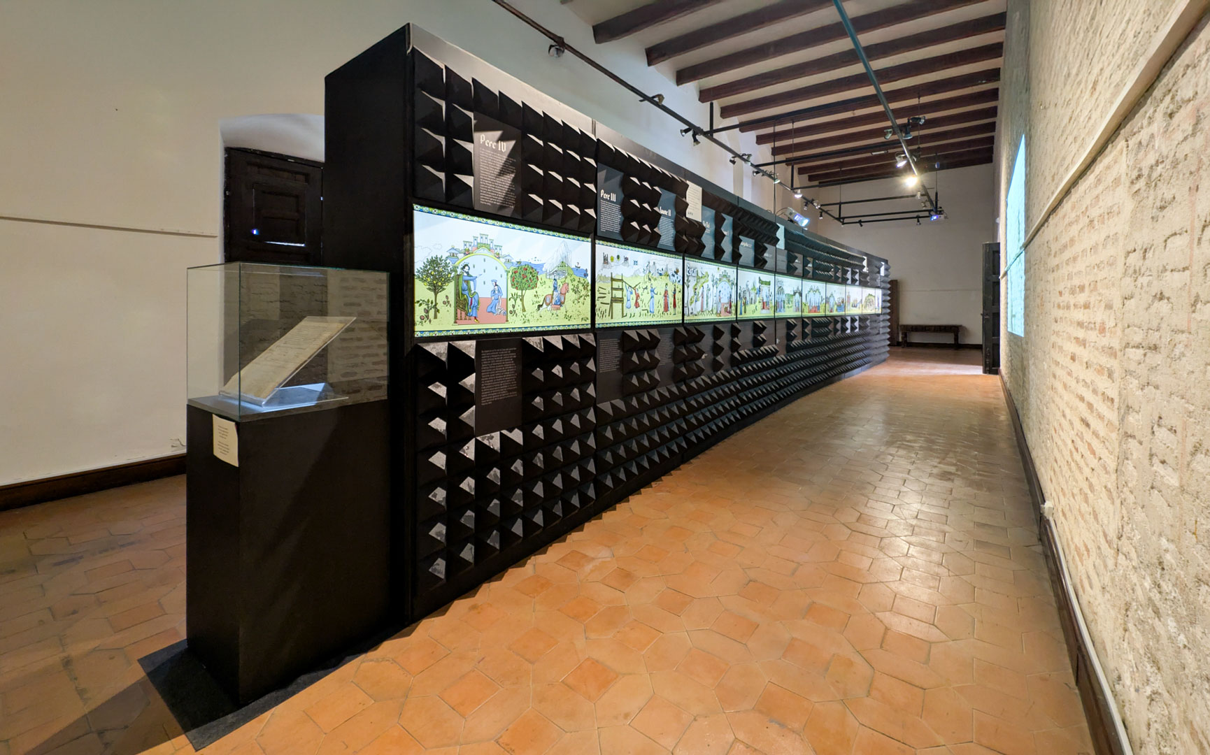 La muestra incluye un relato gráfico tipo cómic que recorre los hitos de la vida de estos nobles, inspirado en las ilustraciones medievales de la Biblia Morgan. El visitante se adentra en los acontecimientos históricos y comprende la relevancia de su legado, explorando los territorios, ceremonias y relaciones de poder que marcaron la historia medieval de la región.
