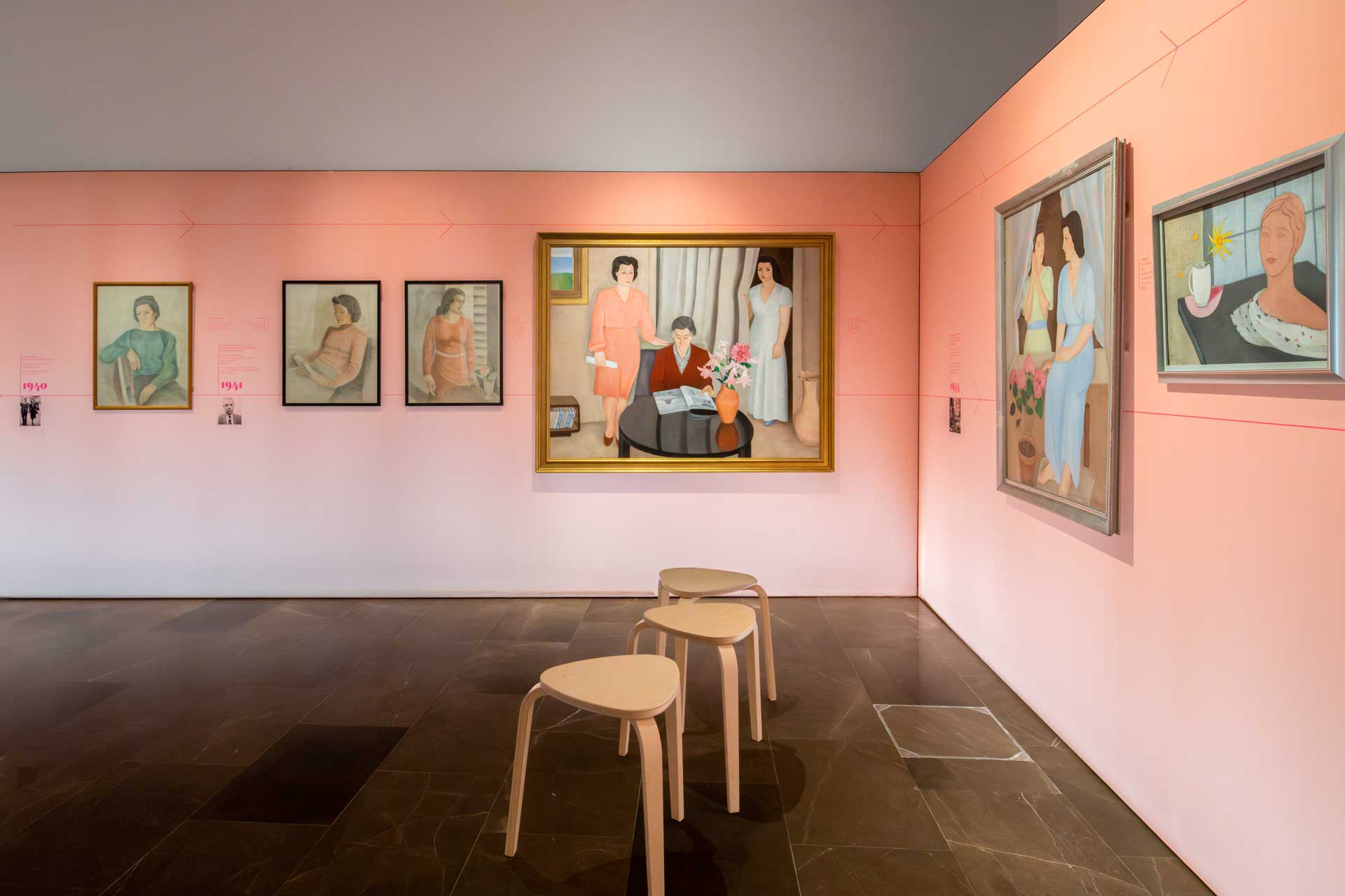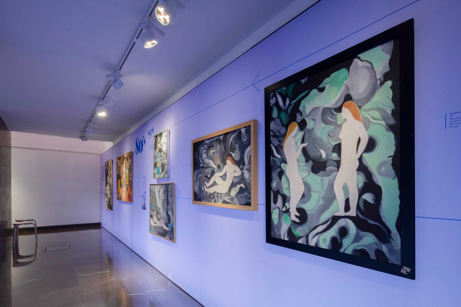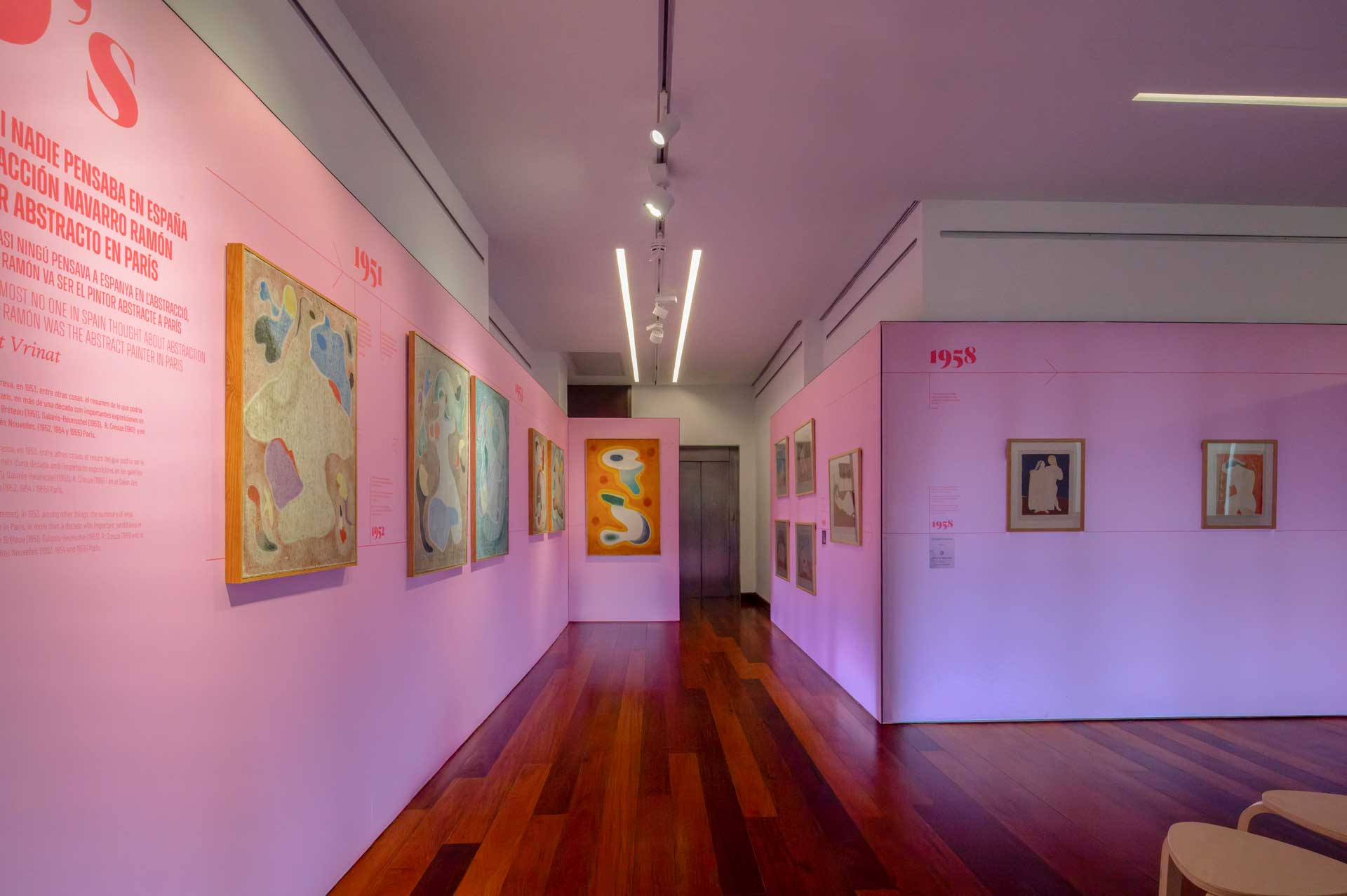 El planteamiento curatorial parte del deseo de articular un discurso doble: por una parte, la figura de la mujer como temática central en la obra de Navarro Ramón —especialmente durante las décadas de los años treinta y cuarenta—; por otra, su paso hacia la abstracción en París durante los cincuenta, ya sin abandonar la centralidad del color y del elemento femenino como punto de partida.