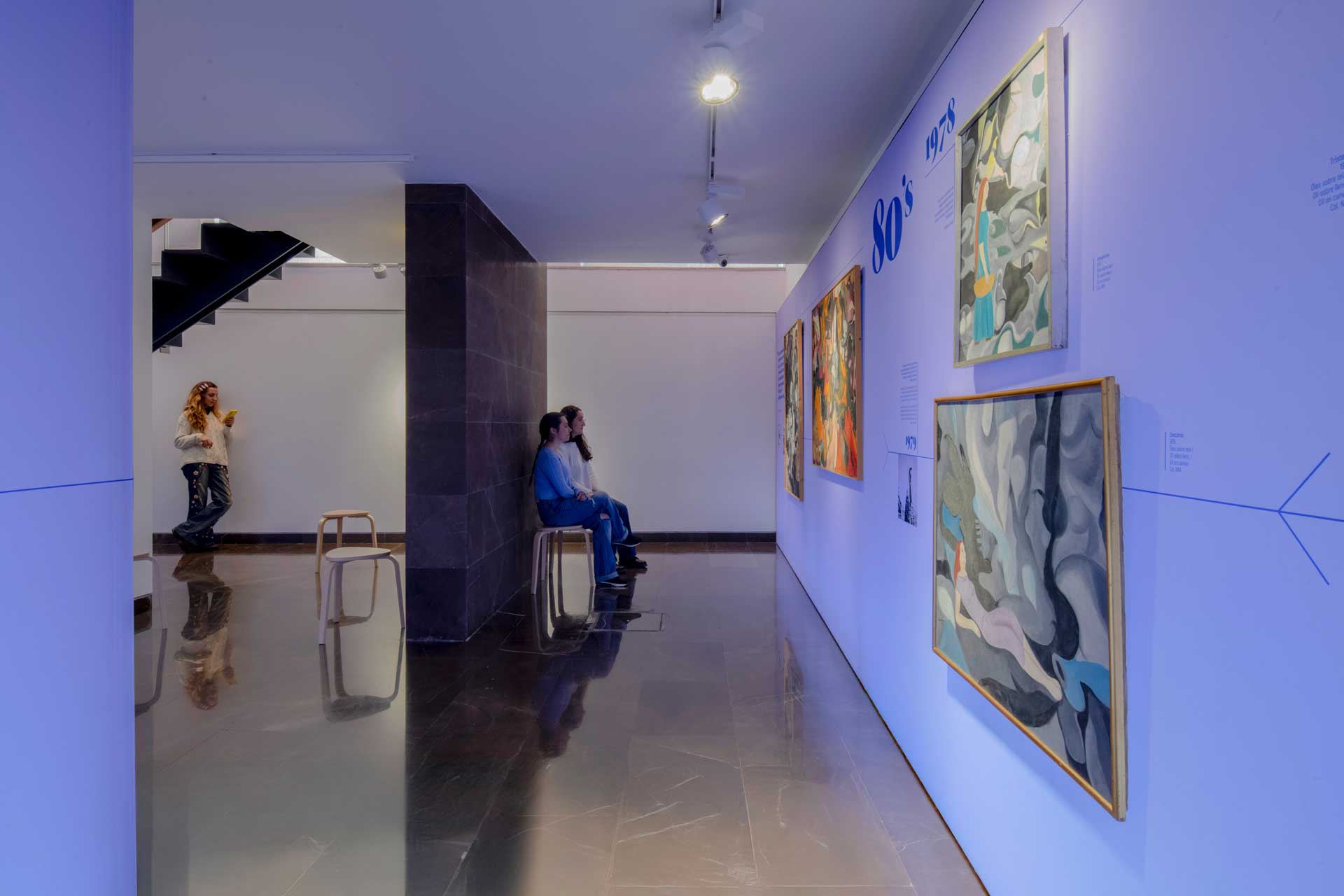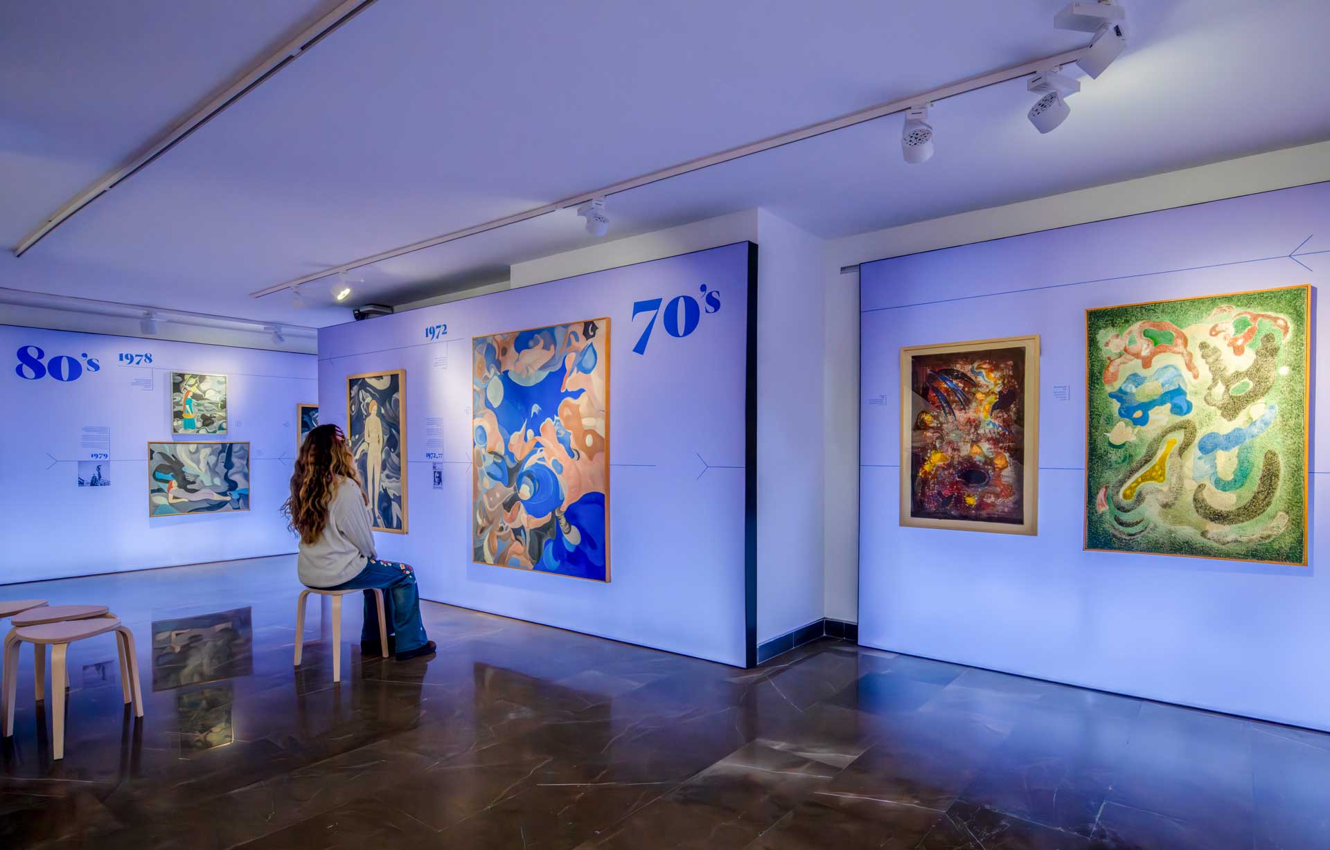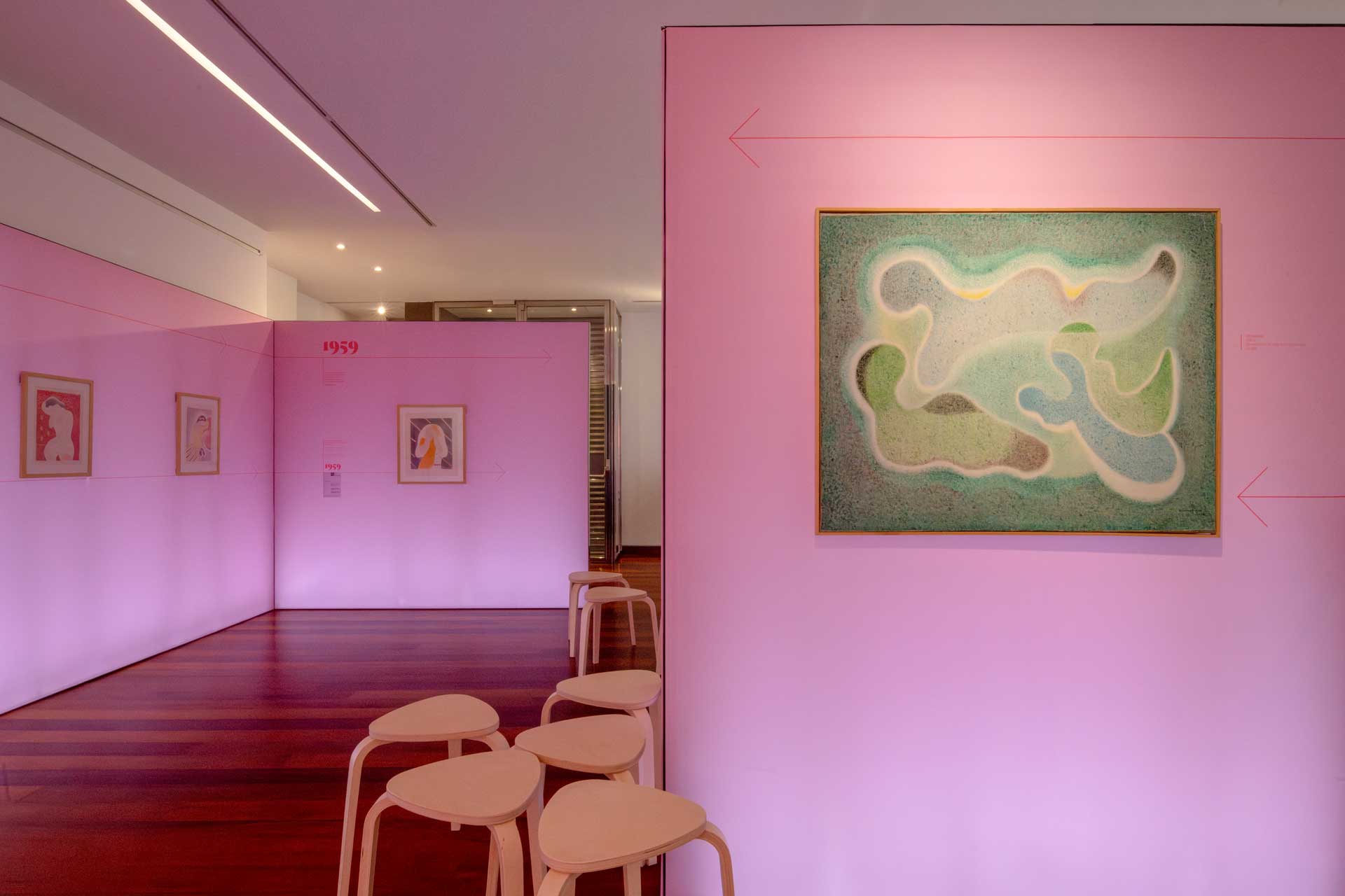 El planteamiento curatorial parte del deseo de articular un discurso doble: por una parte, la figura de la mujer como temática central en la obra de Navarro Ramón —especialmente durante las décadas de los años treinta y cuarenta—; por otra, su paso hacia la abstracción en París durante los cincuenta, ya sin abandonar la centralidad del color y del elemento femenino como punto de partida.